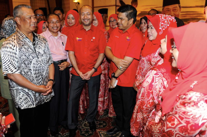Muhyiddin bersama Mukhriz (tiga,kiri) beramah mesra bersama sebahagian wanita Umno pada Majlis Perjumpaan bersama Ketua-Ketua Jabatan Daerah Langkawi dan Kepimpinan 4 Peringkat Umno Bahagian Langkawi pada Ahad. -fotoBERNAMA