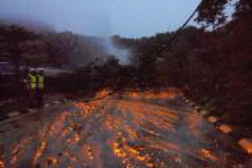 Ketua Balai Bomba dan Penyelamat Taiping, Hasna Rashid berkata, kejadian kira-kira pukul 7.35 malam berlaku apabila bukit setinggi 15 meter runtuh dan pokok-pokok tumbang di atas jalan utama itu.
