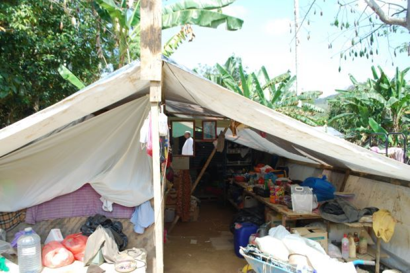 Terdapat 13 khemah perumahan yang digunakan oleh mangsa di kampung itu untuk berlindung. Mereka memasak dan mandi di dewan badminton bersebelahan khemah.