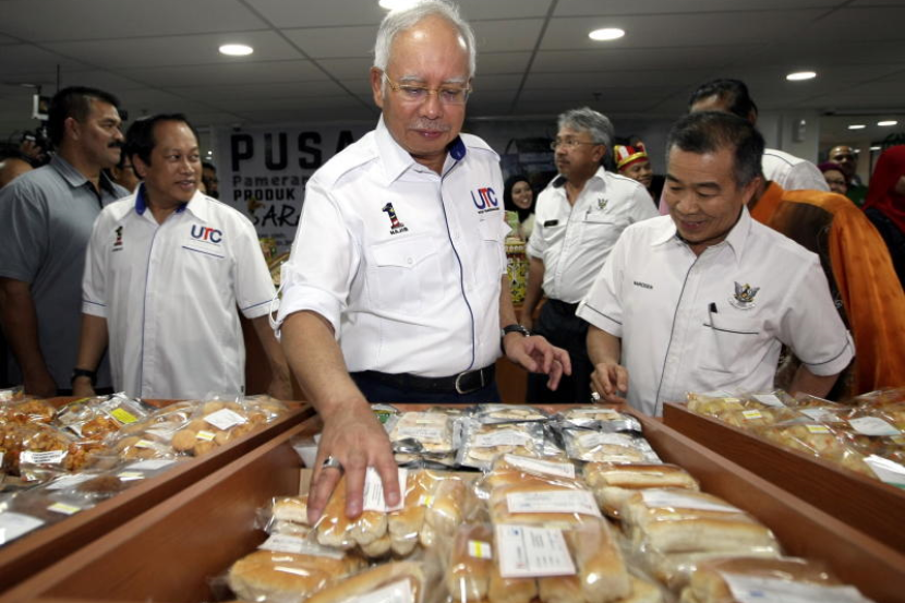 Najib Tun Razak melihat hasil produk yang dijual di Pusat Pameran dan Jualan Produk Tempatan Sarawak ketika melawat Pusat Transformasi Bandar (UTC) Kuching, Khamis. Foto: BERNAMA