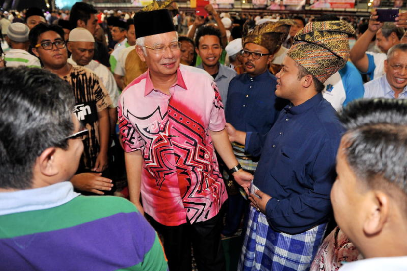 Najib beramah mesra bersama jemaah selepas menunaikan solat Maghrib pada Perhimpunan Perpaduan Melayu di Stadium Putra Bukit Jalil pada Sabtu. malama -fotoBERNAMA