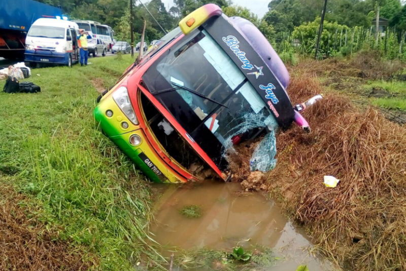 Bas berkenaan bertolak dari Pos Imigresen Tebedu pada jam 11 pagi Ahad dan kemalangan berlaku di sekeloh Selepong, Jalan Sri Aman-Sibu jam 1.15 petang.