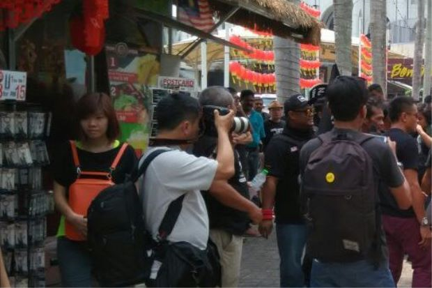 Mengenakan baju hitam, kumpulan itu mula bergerak ke kompleks beli-belah itu pada jam 3 petang.