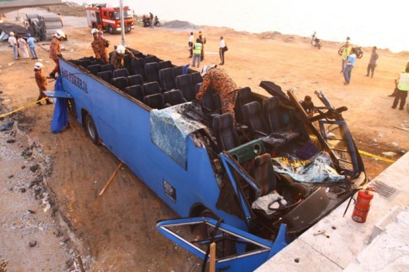 GEORGE TOWN: Seramai 44 orang cedera apabila bas yang dinaiki mereka merempuh sebuah jejambat dekat Zon Perdagangan Bebas Bayan Lepas, awal pagi Selasa.