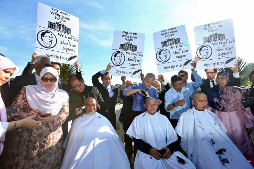 Terdahulu pada pagi Selasa, kira-kira 15 orang termasuk ahli parlimen mencukur rambut mereka sebagai protes menuntut supaya Anwar dibenarkan menghadiri sidang parlimen yang bermula pada Isnin.