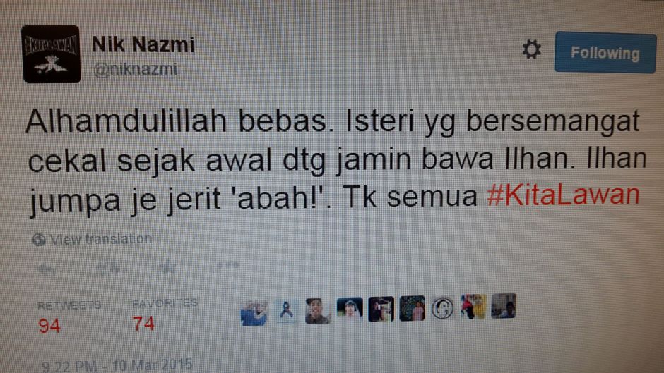 Nik Nazmi yang juga Ahli Dewan Undangan Negeri (Adun) Seri Setia memaklumkan perkara tersebut pada pukul 9.22 malam Selasa di akaun Twitter miliknya.