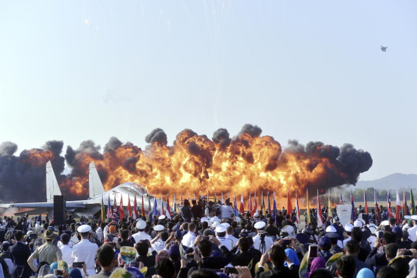 Perdana Menteri Datuk Seri Najib Tun Razak merupakan antara kira-kira 10,000 pengunjung yang berpusu-pusu ke Pusat Pameran Antarabangsa Mahsuri (MIEC) untuk menyaksikan persembahan dimulai dengan pengenalan dua jet pejuang F/A-18 Hornets sebelum disusuli penerbangan lintas oleh lima jet pejuang Sukhoi 30-MKM.