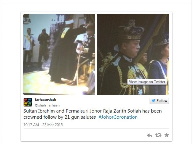 SULTAN Ibrahim dimahkotakan sebagai Sultan Johor kelima dalam sejarah Johor Moden manakala Raja Zarith Almarhum Sultan Idris Shah dimahkotakan sebagai Permaisuri Johor, gelaran yang pertama kali digunakan di Johor.