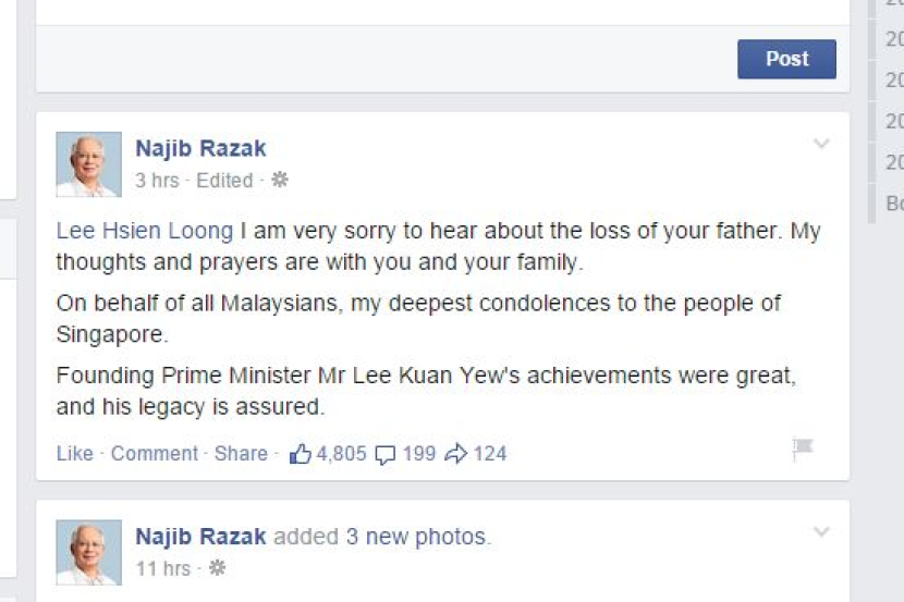 Dalam akaun Facebooknya pada Isnin, Najib menyifatkan pencapaian Kuan Yew sebagai hebat dan legasinya terjamin.