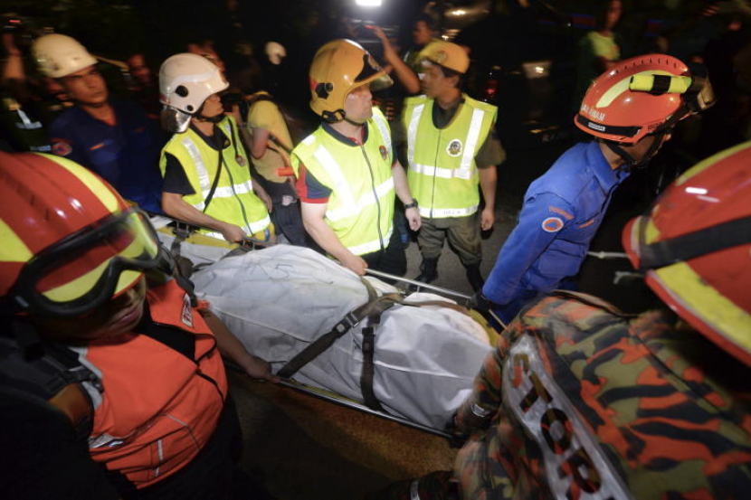 Anggota Bomba dan Penyelamat mengusung keluar mayat mangsa nahas helikopter yang terhempas di Kampung Pasir Baru Semenyih malam ini untuk dibawa ke hospital bagi bedah siasat.