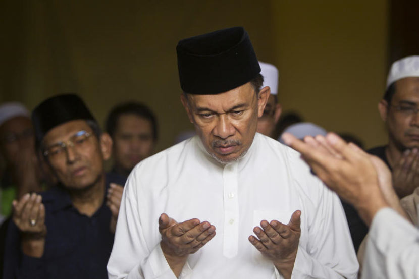 Anwar sempat bersalaman dengan orang yang berada berdekatan dengannya.