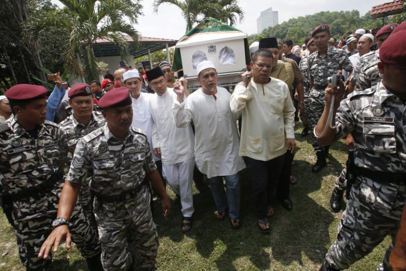 Anwar yang dibenarkan untuk menziarahi dan menghadiri pengebumian bapanya turut mengusung jenazah ke tanah perkuburan pada pukul 2.15 petang sehingga selesai kira-kira sejam kemudian.