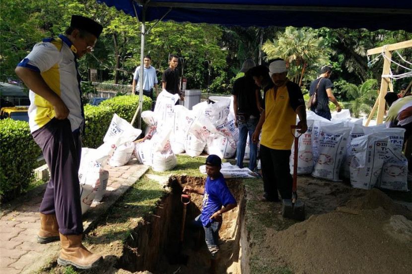 Sementara itu, keadaan di pekarangan Makam Pahlawan di sini tenang dengan petugas menjalankan persiapan untuk upacara pengebumian negara itu.