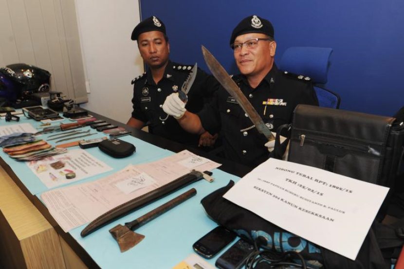 "Selain itu, polis turut merampas enam bilah pisau, tiga topi keledar, 11 telefon bimbit, sebuah motosikal, tiga beg galas, dua utas jam tangan dan wang tunai RM2,024. Nilai keseluruhan rampasan ialah RM20,000," katanya dalam sidang akhbar di sini, Selasa.