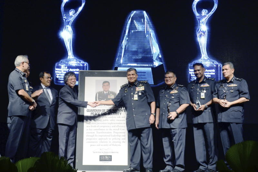 Terdahulu, Pengasas dan Presiden Limkokwing University Tan Sri Lim Kok Wing menyerahkan tiga anugerah yang dimenangi laman web PDRM kepada Khalid.