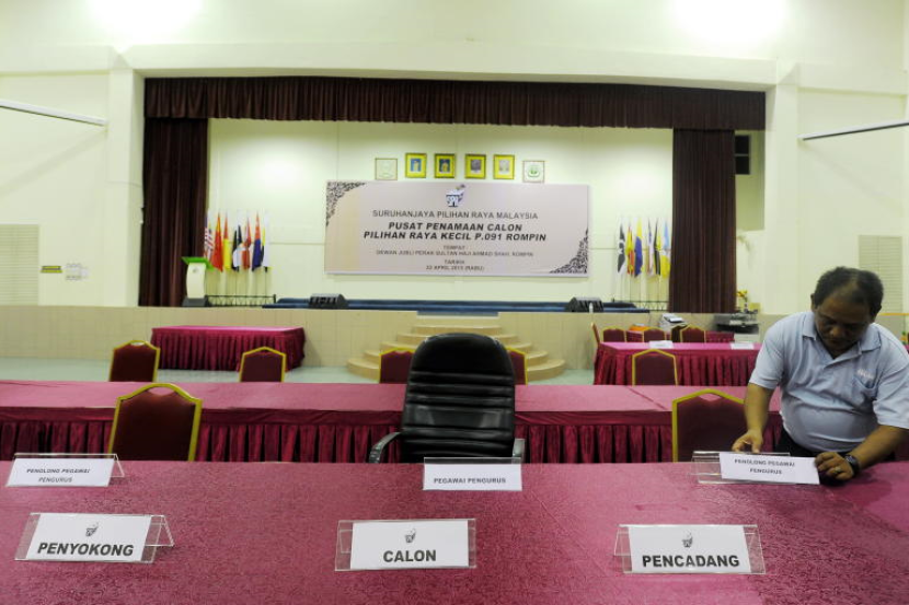 ROMPIN: Pusat penamaan calon bagi Pilihan Raya Kecil (PRK) Parlimen Rompin di Dewan Jubli Perak Sultan Haji Ahmad Shah di sini mula dibuka 9 pagi Rabu.