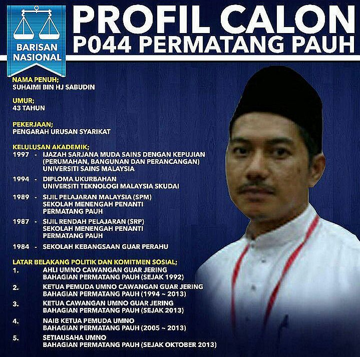 Suhaimi yang juga Setiausaha Umno Bahagian Permatang Pauh tidak asing lagi dikalangan penduduk setempat.