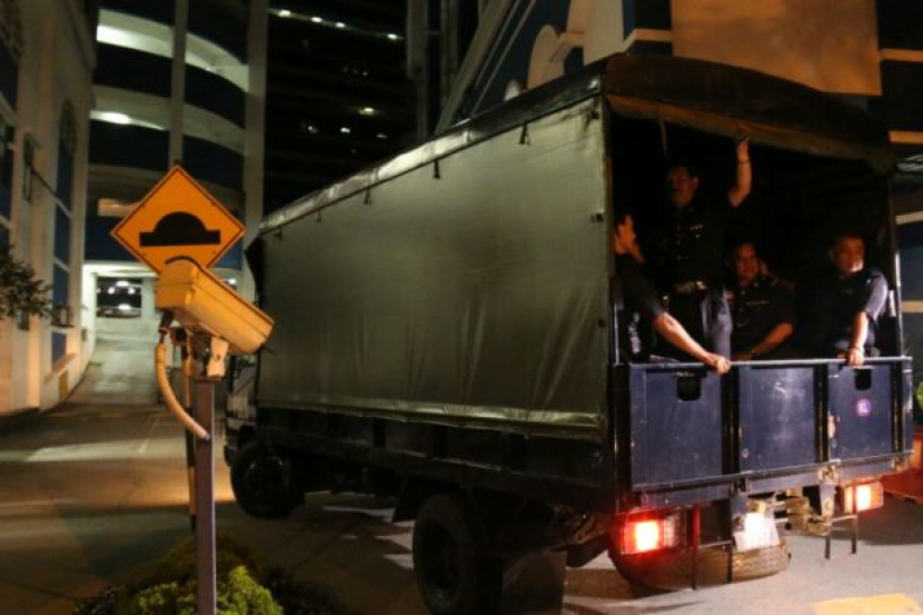 Sebuah trak Black Maria dilihat membawa mereka yang ditahan di Balai Polis Dang Wangi kira-kira pukul 10:30 malam.