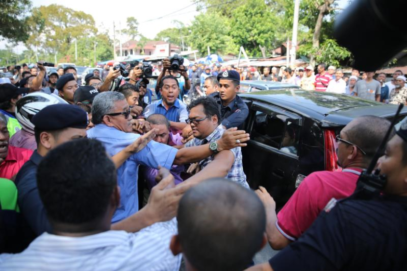 BUKIT MERTAJAM: Insiden keganasan dan kekecohan antara penyokong pakatan pembangkang dan Barisan Nasional (BN) mencemari suasana Pilihan Raya Kecil (PRK) Permatang Pauh yang berlangsung pada Khamis. Bermula dengan ‘perang mulut’, ketegangan kedua-dua penyokong berkenaan akhirnya tidak terkawal hingga berlakunya insiden tumbuk-menumbuk. Lebih buruk apabila pegaduhan tersebut turut mencederakan seorang petugas media dari portal berita KLXpress, Mahathir Mohammad. Mangsa dipukul dalam kejadian kekecohan di luar pusat mengundi Sekolah Kebangsaan Tanah Liat di sini. Namun tidak dapat dipastikan individu yang memukul mangsa terdiri daripada pihak mana. Selain itu kekecohan turut dikesan berlaku di bawah jejambat berhampiran pusat mengundi Sekolah Kebangsaan Seri Penanti. Bagaimanapun penyokong daripada Pakatan Rakyat dan BN yang berkumpul di bahu jalan hanya berperang mulut hingga menyebabkan kesesakan teruk sepanjang empat kilometer. Sesekali kumpulan berkenaan bertindak agresif khususnya ketika sebuah kenderaan jenis Kancil dengan bendera PKR yang melintasi kawasan itu membawa replika mayat berbungkus kain putih. Tindakan provokasi itu mengundang kemarahan di kalangan penyokong BN. Namun tiada kejadian tidak diingini berlaku terhadap kenderaan terbabit. Kekecohan turut berlaku di beberapa lokasi lain seperti di Kubang Semang dan Guar Perahu namun berjaya dikawal oleh anggota polis.
