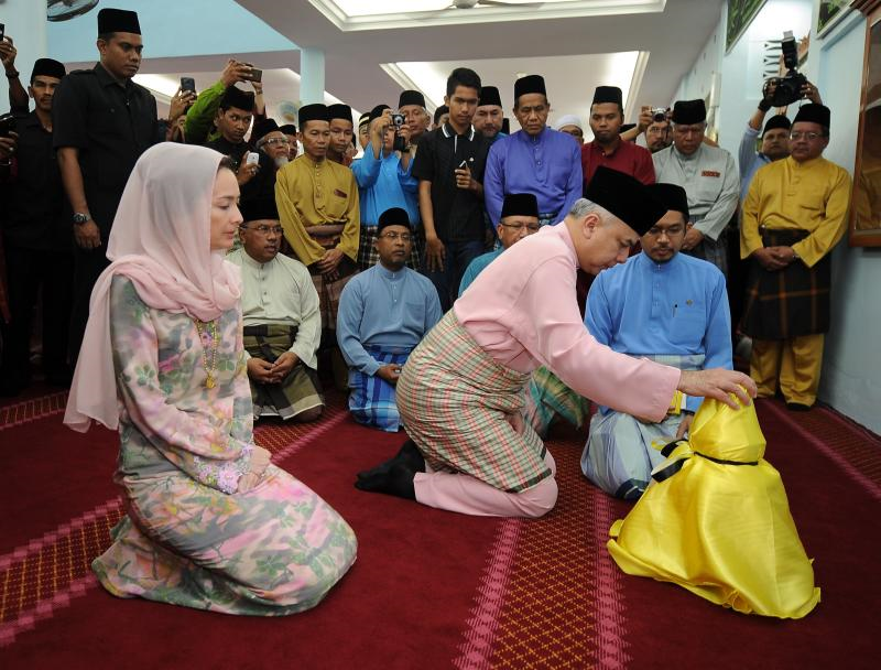 Sultan Nazrin Shah turut menunaikan solat sunat di masjid berkenaan dan pasangan diraja itu dilihat memegang Batu Peringatan Sultan Mansur Shah I.