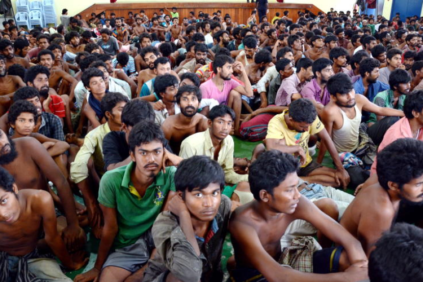 Sebahagian daripada lebih 1,000 Pati warga Bangladesh dan Myanmar Rohingnya termasuk wanita dan kanak-kanak yang ditahan di perairan Langkawi, di Ibu Pejabat Polis Daerah Langkawi di Langkawi, Selasa. Foto BERNAMA