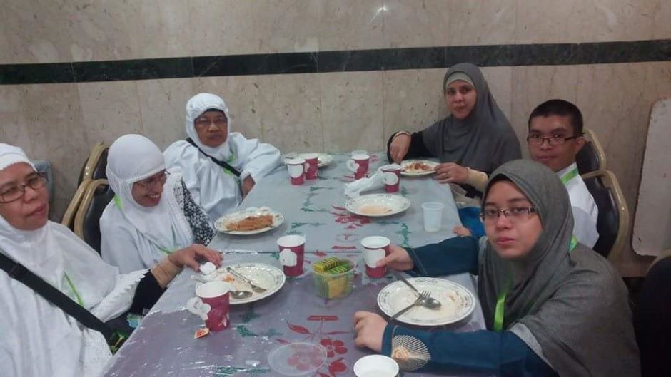 Jemaah menjamu selera di dewan makan sebelum meneruskan ibadah di Tanah Suci.
