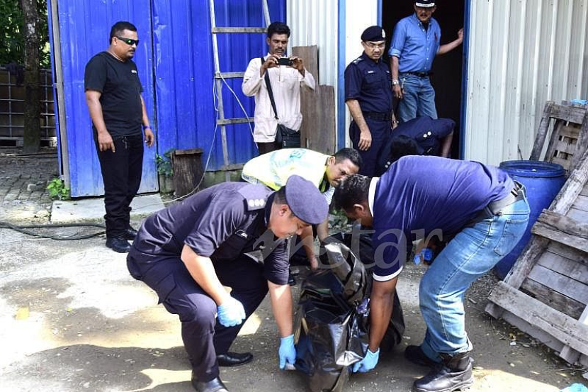 "Polis bergegas ke tempat kejadian dan mendapati terdapat mayat seorang lelaki berusia 30 tahun dan hasil siasatan kami berjaya mengesan suspek yang bersembunyi di sebuah kontena di depoh simpanan minyak tersebut.