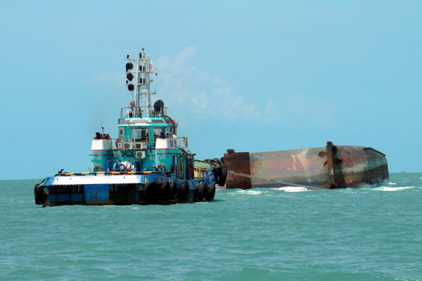 Kapal korek berkenaan yang didaftarkan di Bolivia terbalik akibat dipukul ombak besar pada Rabu ketika sedang dalam perjalanan membawa muatan pasir dari Teluk Rumunia ke Pengerang Johor.