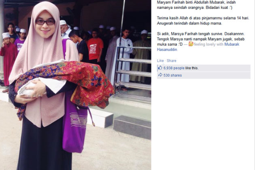 Lebih menyedihkan, kembar Maryam, Marsya Farihah sedang berjuang untuk hidup dan menerima rawatan di Unit Rawatan Rapi Neonatal (NICU) di Hospital Tengku Ampuan Rahimah, Kuantan.