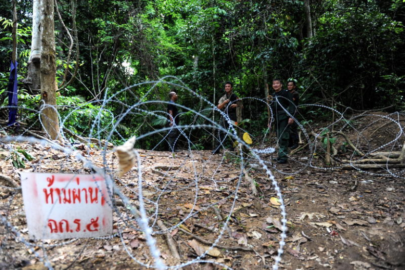 Kawasan kem tahanan Lubuk Sireh, Perlis dikawal oleh anggota Pasukan Gerakan Am (PGA) bagi membolehkan kerja-kerja fasa kedua menggali kubur mangsa sindiket pemerdagangan manusia dijalankan di Ban Talok.