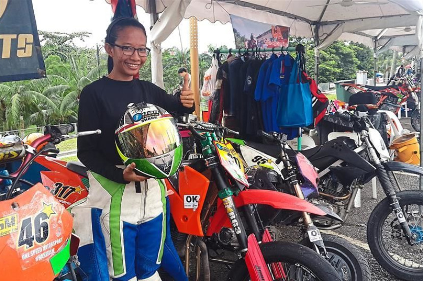 Siti Fatimah merupakan peserta tunggal yang berjaya menewaskan 10 pelumba lelaki dan muncul tempat pertama dalam kategori Kejohanan Supermoto Malaysia CKD, di sini, Ahad.