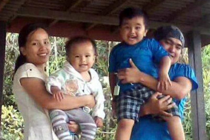 Gambar kenangan Joseph (kanan) bersama isteri dan dua anaknya.