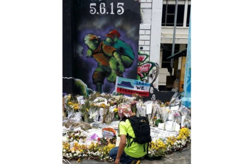 Lukisan mural tersebut 'dipadamkan dengan cat kapur' kerana tempoh berkabung 18 mangsa yang maut dalam tragedi gempa bumi, 5 Jun lalu berakhir pada Jumaat.