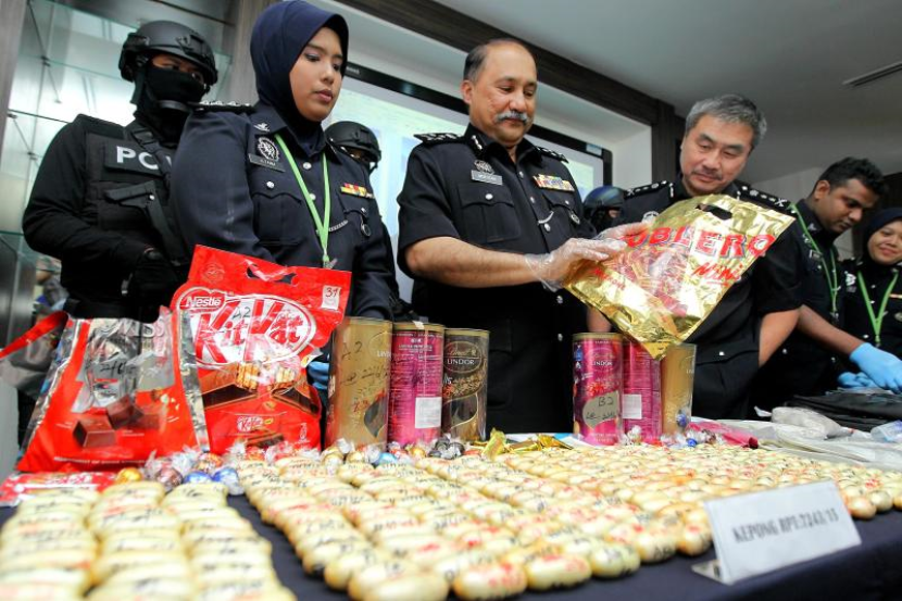 "Dadah yang dirampas ada di antaranya disorok dalam bungkusan plastik coklat dan jumlah keseluruhan dadah yang dirampas seberat 8.26kg (kokain 7.43kg, syabu 0.83kg) bernilai RM1.8 juta," katanya.