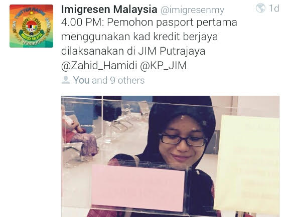Nur Adibah Rahmat, 28, yang berkongsi pengalamannya berkata, kehadirannya di kaunter imigresen bertujuan untuk memperbaharui pasportnya bagi melakukan tugasan luar di Singapura dan dimaklumkan bahawa pembayaran kini boleh dibuat menggunakan kad kredit.
