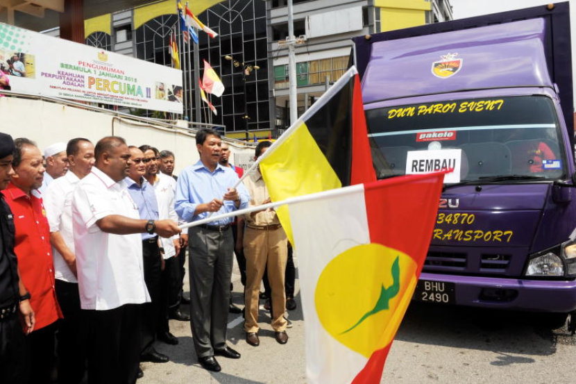 Datuk Seri Mohamad Hasan melepaskan konvoi sempena Pelancaran Program Agihan Kurma, Air Zam-zam dan Kain Baju Melayu Peringkat Negeri Sembilan pada Isnin. Turut hadir Pengerusi Biro Kebajikan Umno, Datuk Abdul Azeez Abdul Rahim. -fotoBERNAMA