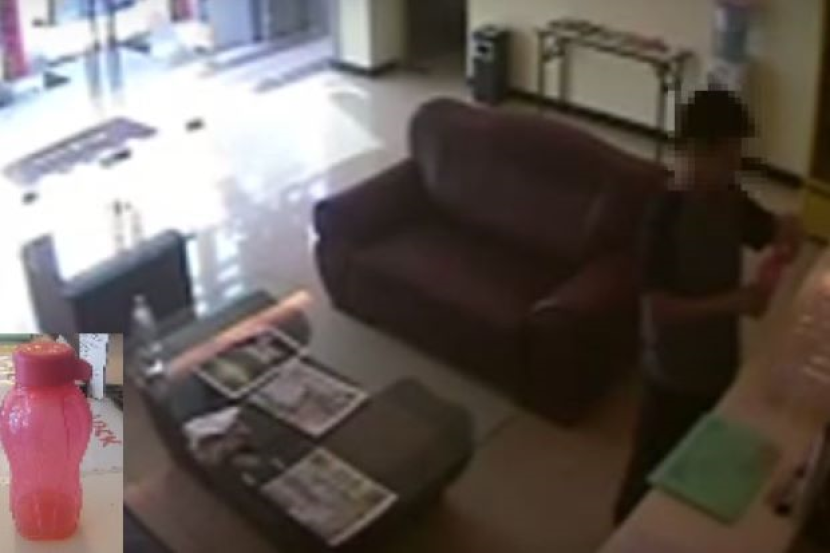 Pemilik botol air yang merupakan kerani di situ mendapati air dari botol itu yang diminumnya 'memualkan'.