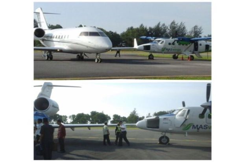 KUCHING: Sebuah jet yang membawa Yang Dipertua Negeri Sarawak, Tun Abdul Taib Mahmud merempuh pesawat MASWings selepas mendarat di Lapangan Terbang Mukah pada Rabu. Ketua Polis Daerah Mukah, DSP Jimmy Panyau berkata sayap kiri jet yang dinaiki Taib merempuh bahagian depan pesawat MASWings berkenaan. "Jet itu baharu sahaja mendarat dan sedang menuju ke terminal sebelum merempuh pesawat MASWings yang sedang parkir," katanya ketika dihubungi. Bahagian depan pesawat MASWings didapati kemik manakala lampu di bahagian sayap kiri jet mengalami kerosakan. Tiada kecederaan dilaporkan dalam insiden yang berlaku pada pukul 4.42 petang itu. Taib berada di Mukah untuk menghadiri majlis berbuka puasa.