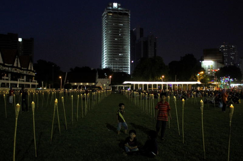 Ribuan pelita menerangi Dataran Merdeka pada majlis pelancaran Malam Likur yang disempurnakan Menteri Wilayah Persekutuan Datuk Seri Tengku Adnan Tengku Mansor. -fotoBERNAMA
