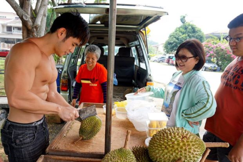 Ahad lalu, jurulatih peribadi itu memuat naik 10 gambar mengenai dirinya membantu ibu bapa rakannya menjual durian di SS2 di sini.