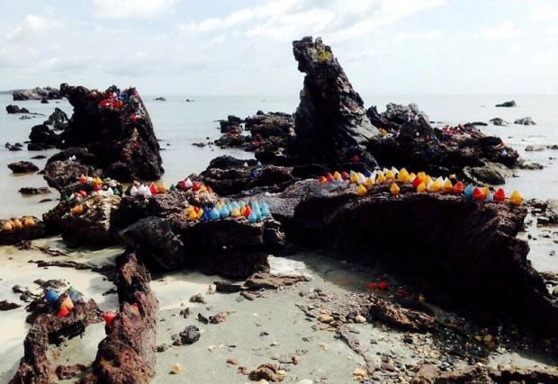 KOTA TINGGI: Lebih 300 objek misteri yang menyerupai ukiran pada kuil Borobodur, di Jawa Tengah, Indonesia ditemui di atas batu di pantai Tanjung Balau dekat sini, Rabu.