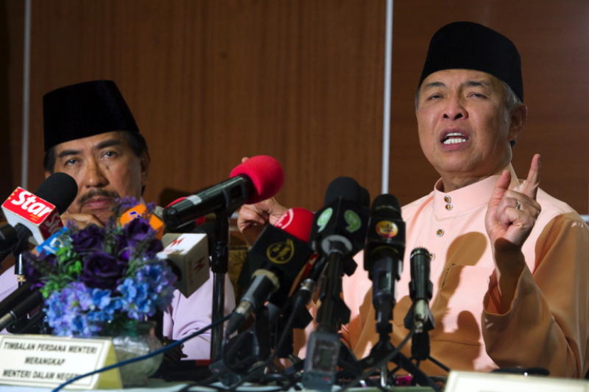 Timbalan Perdana Menteri Datuk Seri Dr Ahmad Zahid Hamidi pada sidang media selepas mempengerusikan Mesyuarat Jawatankuasa Induk Pengurusan Warga Asing di Sabah di Ibu Pejabat Polis Bukit Aman, Jumaat. Turut hadir Ketua Menteri Sabah Datuk Seri Musa Aman.