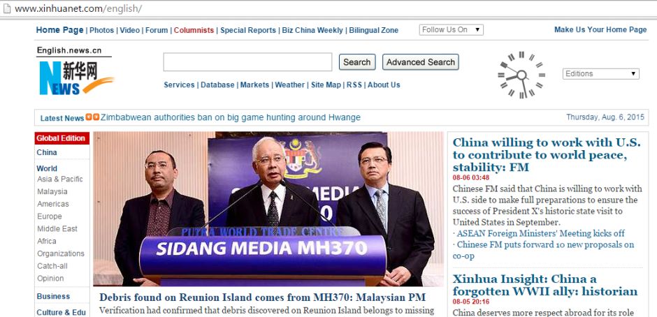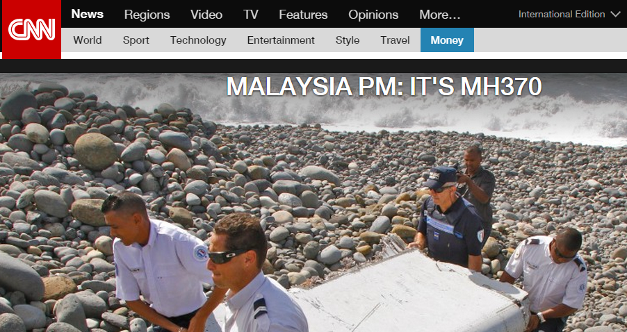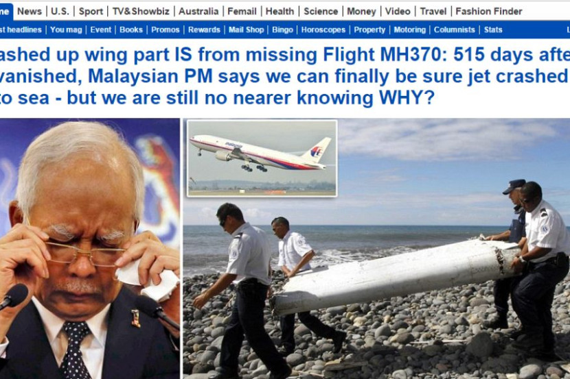 PETALING JAYA: Pengumuman Perdana Menteri Datuk Seri Najib Tun Razak bahawa flaperon yang ditemui di Pulau Reunion merupakan milik pesawat yang hilang, MH370 turut menjadi laporan utama portal berita terkemuka dunia.