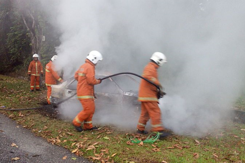 "Kebakaran melibatkan sebuah kereta jenis Proton Wira Aeroback yang terbakar sepenuhnya.