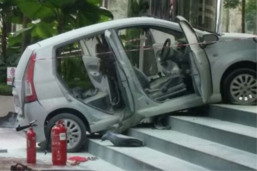 "Wanita itu bertindak menggunakan pemetik api untuk membakar bajunya sejurus keluar dari kereta selepas merempuh tangga pintu utama bangunan itu," kata Ketua Polis Daerah Brickfields, ACP Sharul Othman Mansor.