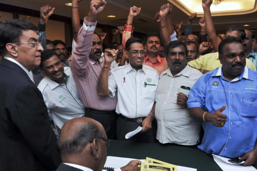 Dr S. Subramaniam bersama penyokongnya ketika proses pemilihan jawatan Presiden MIC yang baharu di bangunan ibu pejabat parti itu pada Jumaat. -fotoBERNAMA