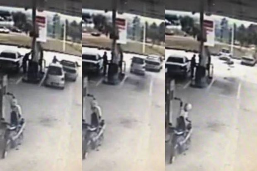 Insiden tersebut dirakamkan dalam kamera kitar tertutup stesen minyak berkenaan dan menjadi viral di laman media sosial.
