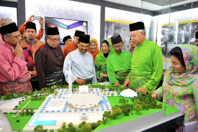 Yang di-Pertuan Agong Tuanku Abdul Halim Mu'adzam Shah (tiga, kanan) dan Raja Permaisuri Agong Tuanku Hajah Haminah (empat, kanan) berkenan melihat replika Masjid Negara selepas merasmikan sambutan Jubli Emas Masjid Negara pada Jumaat. Turut hadir Perdana Menteri Datuk Seri Najib Tun Razak (dua, kanan) dan isteri Datin Seri Rosmah Mansor (kanan),Jamil Khir Baharom (tiga, kiri) serta Ketua Pengarah Jabatan Kemajuan Islam Malaysia Datuk Othman Mustapha (kiri).