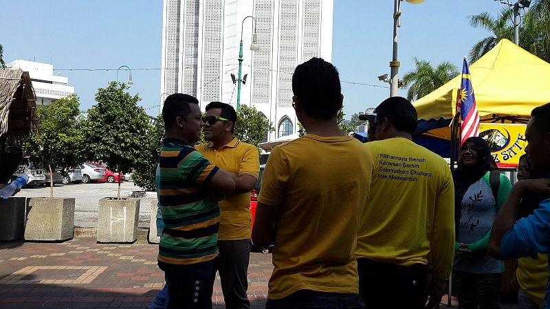 10.45 pagi: Kumpulan lelaki yang mendakwa sebagai PKR Perlis memakai baju Bersih-T hitam dengan lambang harimau.