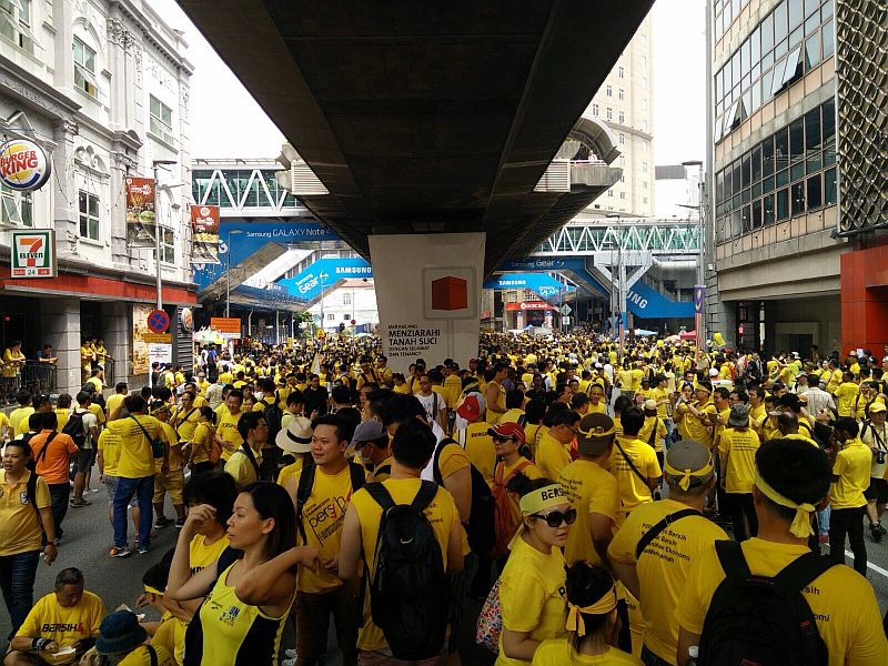 2.36 petang: peserta perhimpunan Bersih 4 di Dataran Maybank berarak ke Dataran Merdeka.